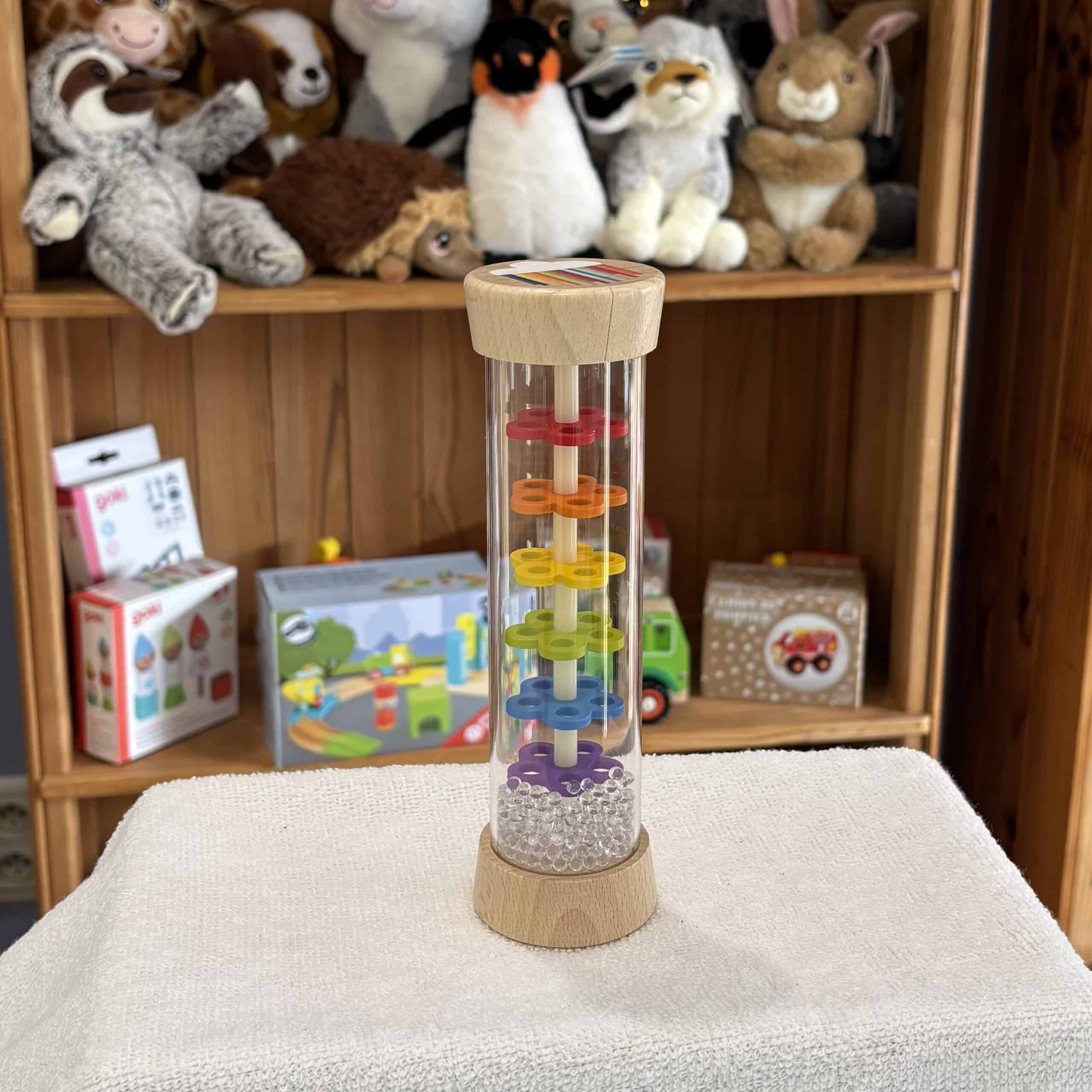 Un jouet sensoriel apaisant qui imite le son de la pluie, parfait pour stimuler l’écoute, la curiosité et la détente de bébé.