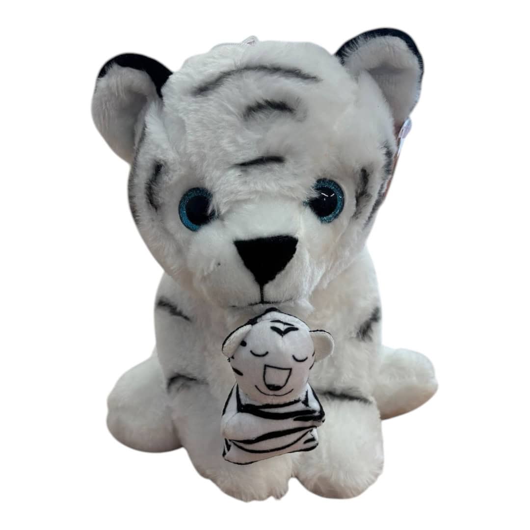 Ce tigre blanc en peluche de 25 cm séduit au premier regard. Doux, attendrissant et original, il tient délicatement son petit dans sa bouche, formant un duo indissociable. Les deux peluches sont cousues ensemble, ce qui renforce le lien entre elles tout en assurant une sécurité parfaite pour les enfants dès le plus jeune âge.