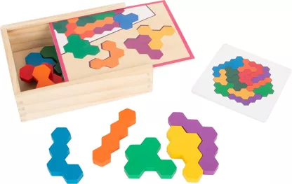 Puzzle hexagonal en bois coloré